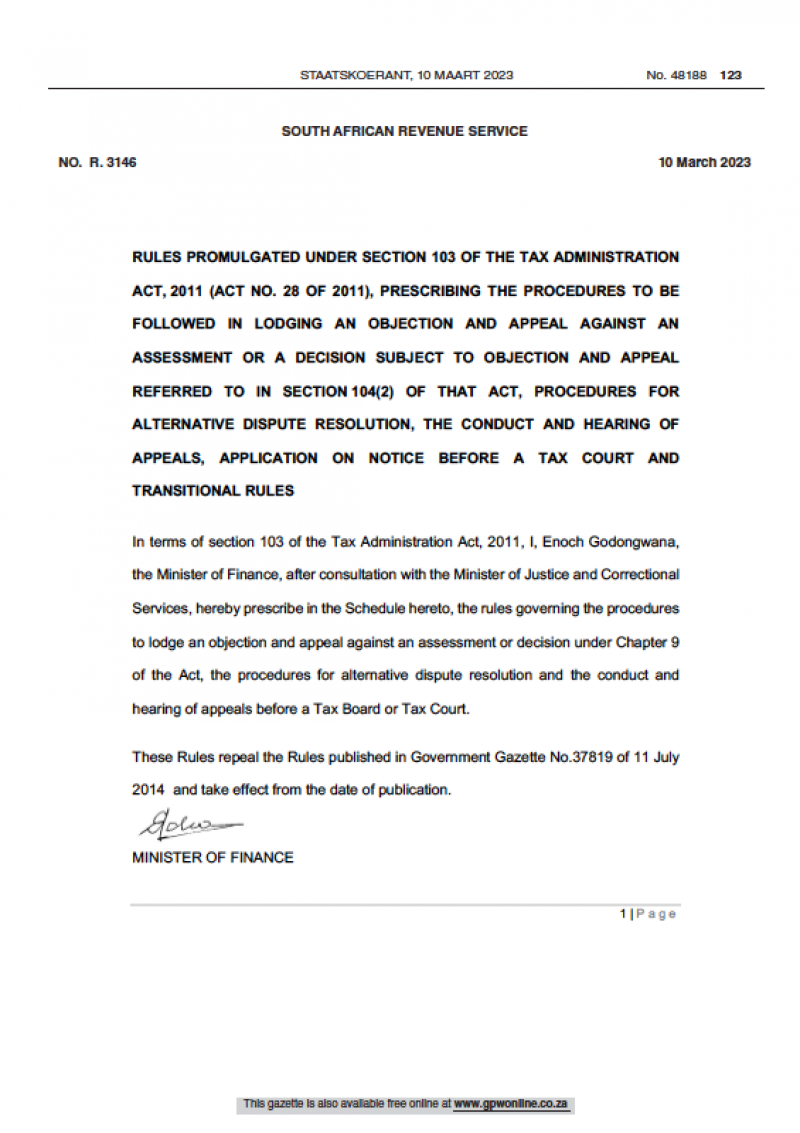 The Minister of Finance approved new dispute resolution rules under the Tax Administration Act, 2011...
